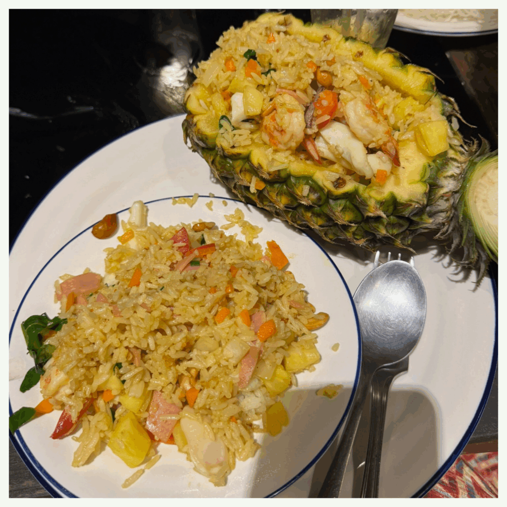 Fidèle à mon statut d’Européenne pas habituée à 33 °C dès 9h du matin, j’ai naturellement opté pour un iced coffee. Et je n’ai pas été déçue : le café était bon, rafraîchissant, et servi rapidement. D’ailleurs, Punthai Coffee est une chaîne thaïlandaise de cafés, que l’on retrouve un peu partout dans le pays, et que je valide sans hésitation pour un bon café sur le pouce !