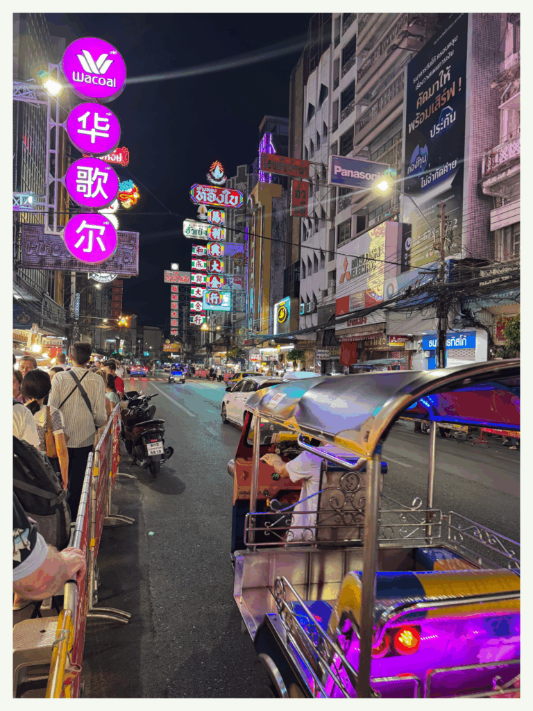 Après un dernier tour dans le marché qui sert de petite balade digestive, nous rentrons à l’hôtel via Grab, fatigués mais heureux. Bangkok nous a parfaitement accueillis, et ce n’est que le début de l’aventure.