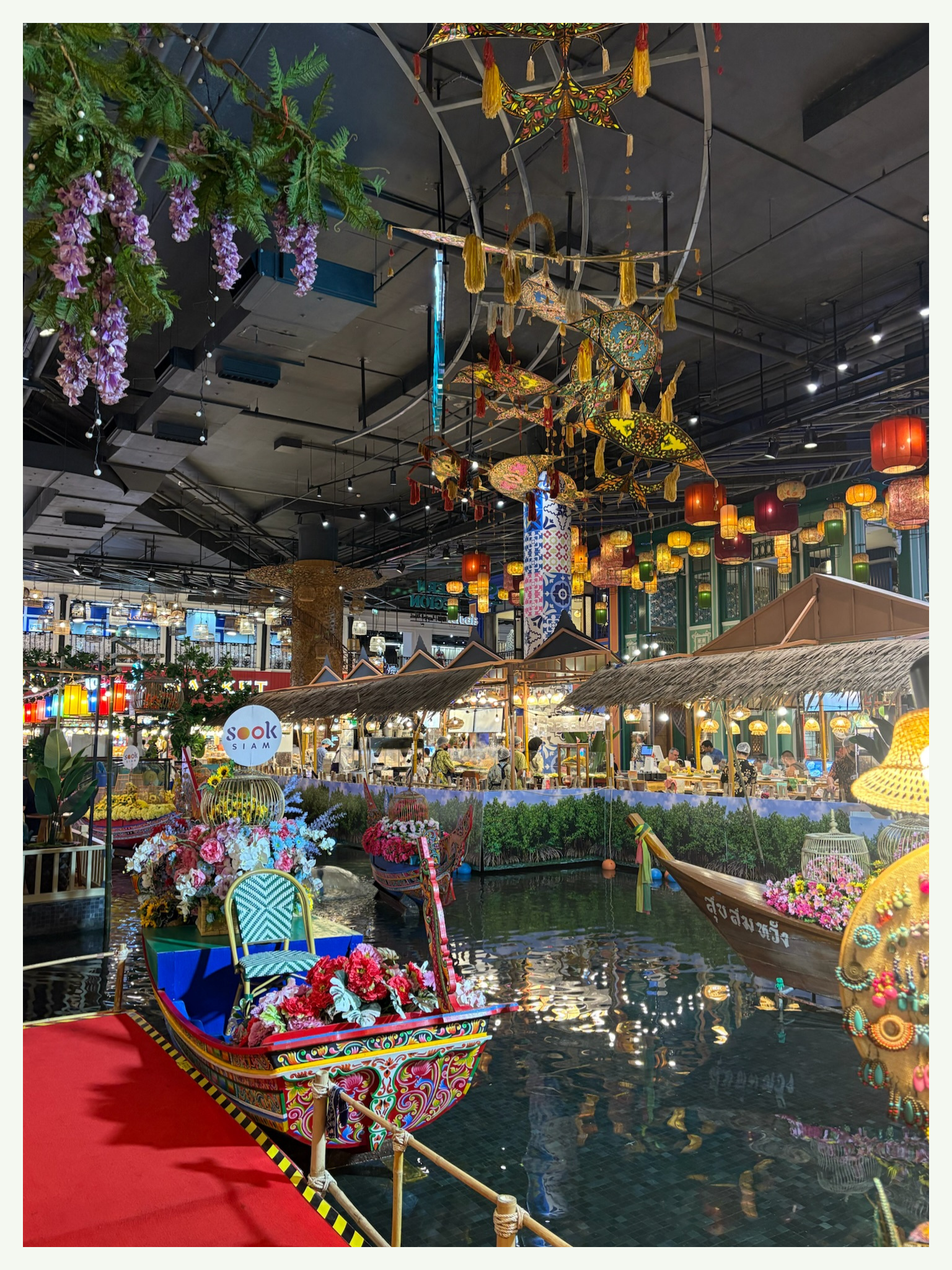 Inauguré en 2018 sur les rives du Chao Phraya, Iconsiam est l’un des centres commerciaux les plus impressionnants d’Asie. Véritable ville dans la ville, il regroupe plus de 7 000 boutiques, du luxe (Louis Vuitton, Hermès, Chanel) aux marques locales. Son rez-de-chaussée, SookSiam, reconstitue un marché flottant intérieur vibrant de couleurs, de senteurs et de spécialités régionales.