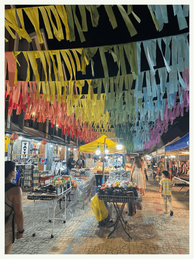 Je perds tout contrôle (sans grande résistance) : souvenirs familiaux, objets artisanaux, et, parce qu’on ne se refait pas, quelques douceurs locales comme les célèbres Pringles goût crevette (à tester absolument !). Je glisse aussi dans mon panier une paire de pantalons aux motifs d’éléphants, du Ya Dom (inhalateur thaï aux huiles essentielles) et divers petits trésors gourmands dont je ne me souviens déjà plus. Une chose est sûre : j’achète d’abord… et je réfléchirai à la valise après.